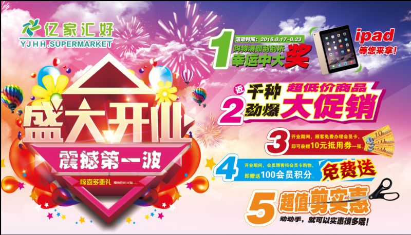 活動(dòng)內(nèi)容:活動(dòng)期間凡在億家匯好超市區(qū)購物的顧客,憑海報(bào)剪角可購得相對(duì)應(yīng)位置超值商品一份,實(shí)惠多多,敬請(qǐng)選購?。▎螐埣艚窍奘褂靡淮危?/span>